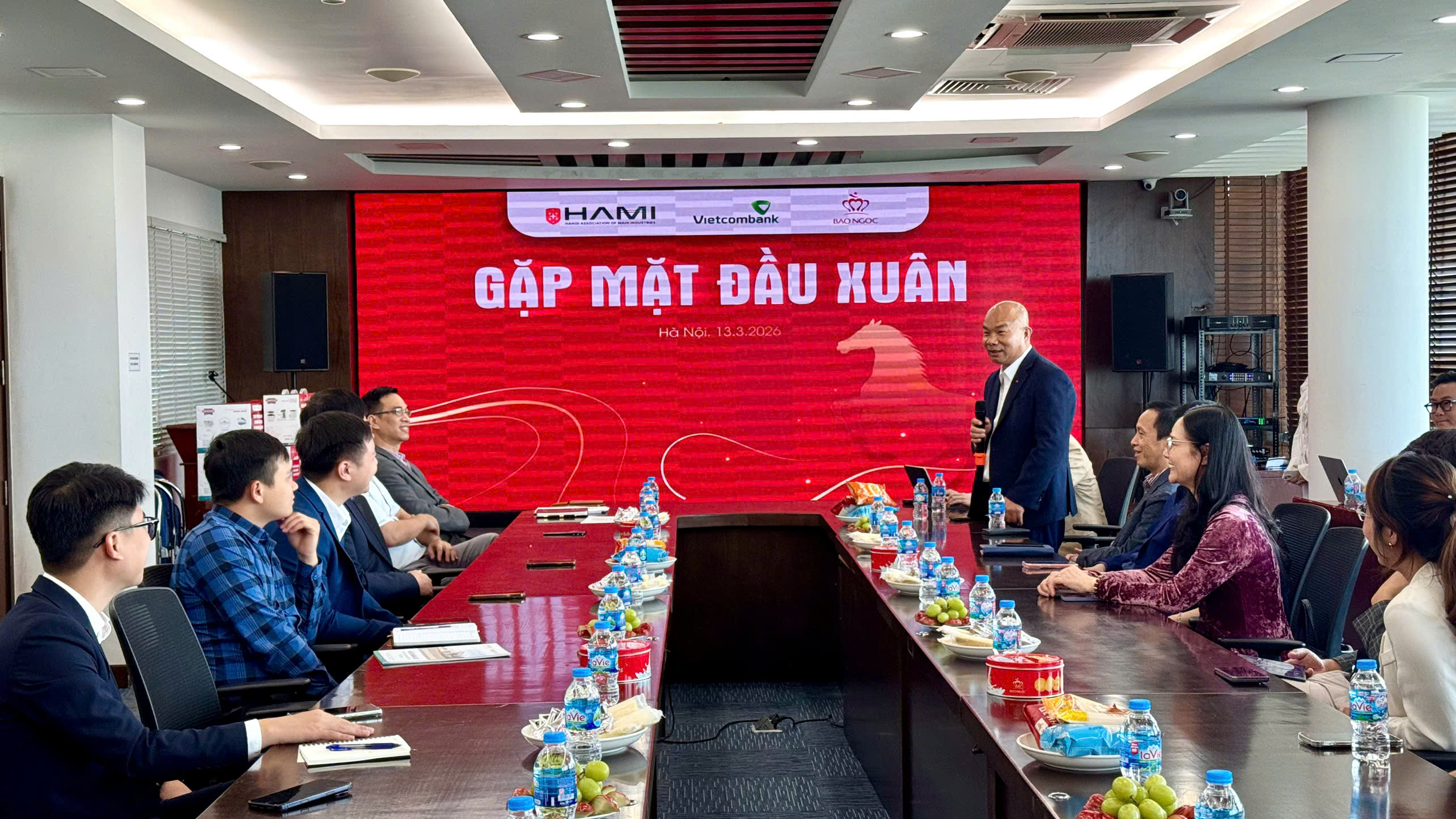 Sáng ngày 13/3/2026, đoàn Hội Doanh nghiệp sản xuất sản phẩm công nghiệp chủ lực TP Hà Nội (HAMI) đã đến thăm và làm việc tại Tập đoàn Bảo Ngọc trong khuôn khổ chương trình thăm doanh nghiệp hội viên và trao quà cho người lao động.